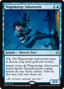 Whenever Daring Saboteur deals combat damage to a player, you may draw a card. If you do, discard a card.