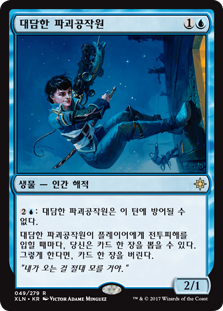 | Rules | : Daring Saboteur can't be blocked this turn. Whenever Daring Saboteur deals combat damage to a player, you may draw a card. If you do, discard a card. |