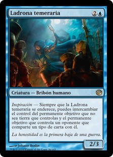 Rules Inspired — Whenever Daring Thief becomes untapped, you may exchange control of target nonland permanent you control and target permanent an opponent controls that shares a card type with it.