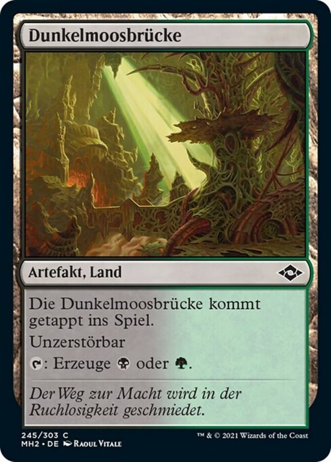 | Rules | Darkmoss Bridge enters the battlefield tapped. Indestructible : Add or . |