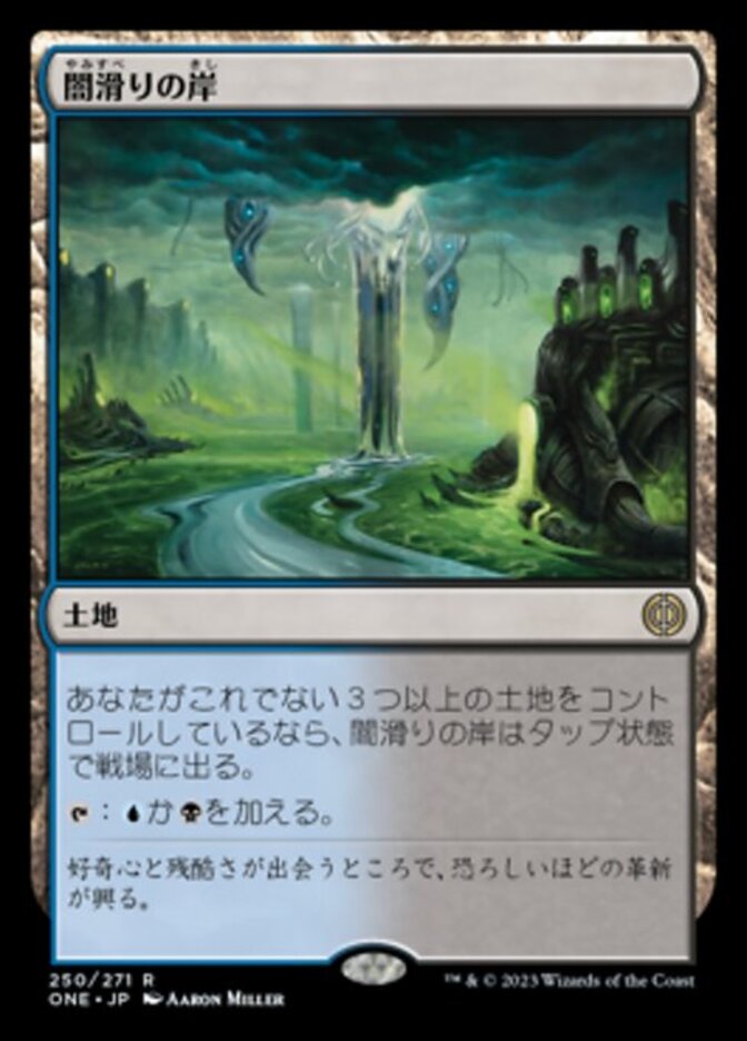 | Rules | Darkslick Shores enters the battlefield tapped unless you control two or fewer other lands. : Add or . |