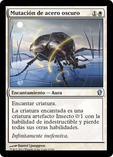 | Rules | Enchant creature Enchanted creature is an Insect artifact creature with base power and toughness 0/1 and has indestructible, and it loses all other abilities, card types, and creature types. |