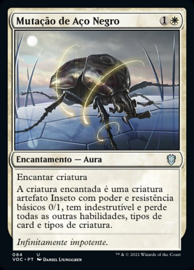 | Rules | Enchant creature Enchanted creature is an Insect artifact creature with base power and toughness 0/1 and has indestructible, and it loses all other abilities, card types, and creature types. |
