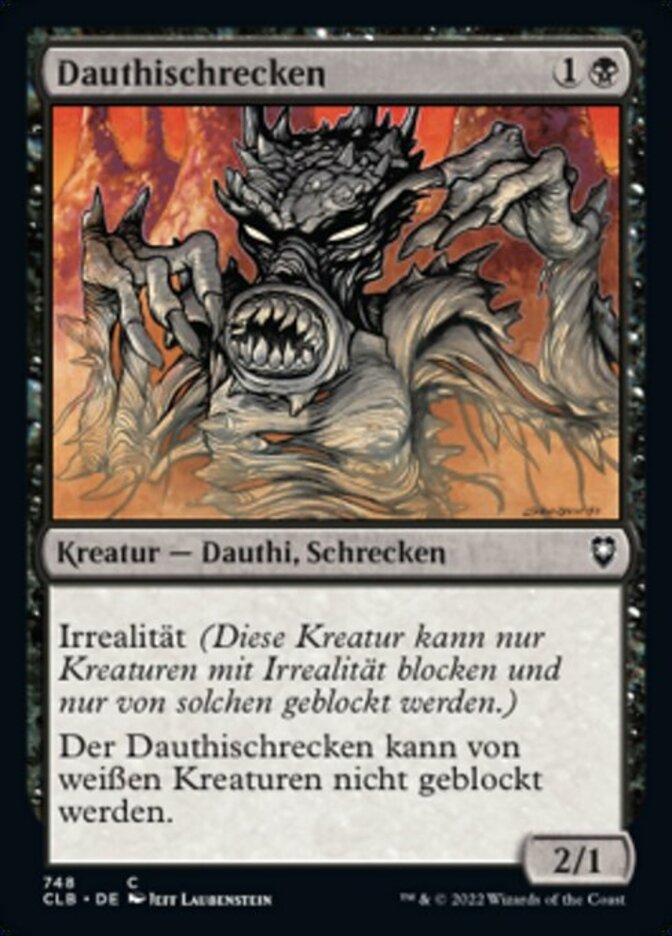 | Rules | Shadow (This creature can block or be blocked by only creatures with shadow.) Dauthi Horror can't be blocked by white creatures. |