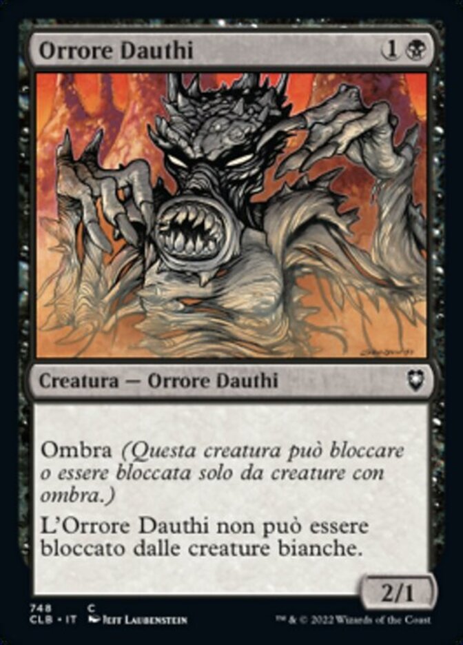 | Rules | Shadow (This creature can block or be blocked by only creatures with shadow.) Dauthi Horror can't be blocked by white creatures. |
