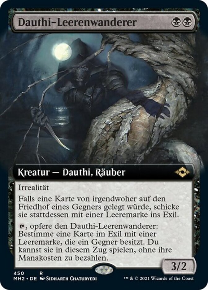 | Rules | Shadow (This creature can block or be blocked by only creatures with shadow.) If a card would be put into an opponent's graveyard from anywhere, instead exile it with a void counter on it. , Sacrifice Dauthi Voidwalker: Choose an exiled card an opponent owns with a void counter on it. You may play it this turn without paying its mana cost. |