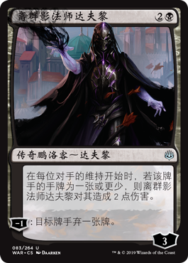 | Rules | At the beginning of each opponent's upkeep, if that player has one or fewer cards in hand, Davriel, Rogue Shadowmage deals 2 damage to them. −1: Target player discards a card. |