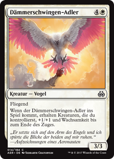 | Rules | Flying When Dawnfeather Eagle enters the battlefield, creatures you control get +1/+1 and gain vigilance until end of turn. |