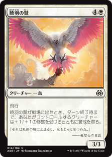 | Rules | Flying When Dawnfeather Eagle enters the battlefield, creatures you control get +1/+1 and gain vigilance until end of turn. |