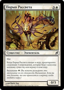 | Rules | Flash When Dawnfluke enters the battlefield, prevent the next 3 damage that would be dealt to any target this turn. Evoke (You may cast this spell for its evoke cost. If you do, it's sacrificed when it enters the battlefield.) |