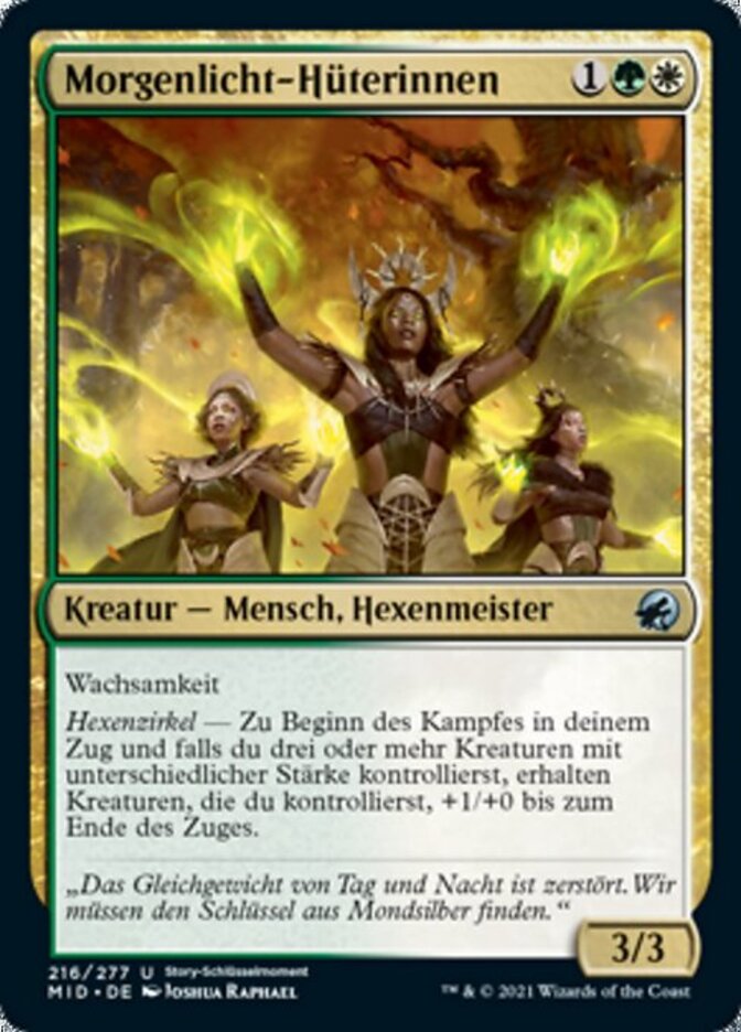 | Rules | Vigilance Coven — At the beginning of combat on your turn, if you control three or more creatures with different powers, creatures you control get +1/+0 until end of turn. |