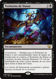 | Rules | Constellation — Whenever Daxos's Torment or another enchantment enters the battlefield under your control, Daxos's Torment becomes a 5/5 Demon creature with flying and haste in addition to its other types until end of turn. |