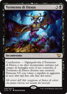 | Rules | Constellation — Whenever Daxos's Torment or another enchantment enters the battlefield under your control, Daxos's Torment becomes a 5/5 Demon creature with flying and haste in addition to its other types until end of turn. |