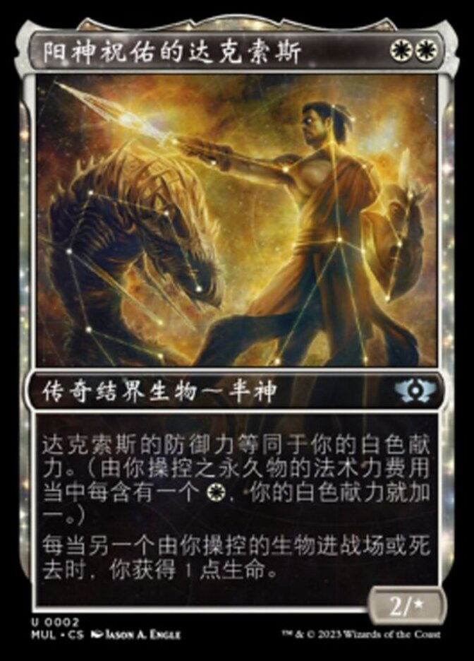 | Rules | Daxos's toughness is equal to your devotion to white. (Each in the mana costs of permanents you control counts toward your devotion to white.) Whenever another creature you control enters the battlefield or dies, you gain 1 life. |
