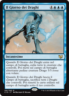 | Rules | When Day of the Dragons enters the battlefield, exile all creatures you control. Then create that many 5/5 red Dragon creature tokens with flying. When Day of the Dragons leaves the battlefield, sacrifice all Dragons you control. Then return the exiled cards to the battlefield under your control. |