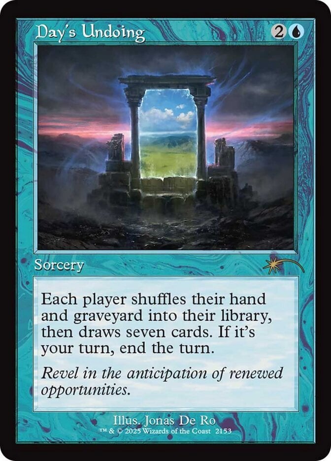 Rules | Each player shuffles their hand and graveyard into their library, then draws seven cards. If it's your turn, end the turn. (Exile all spells and abilities from the stack, including this card. Discard down to your maximum hand size. Damage wears off, and "this turn" and "until end of turn" effects end.) |
