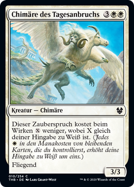 | Rules | This spell costs less to cast, where X is your devotion to white. (Each in the mana costs of permanents you control counts toward your devotion to white.) Flying |