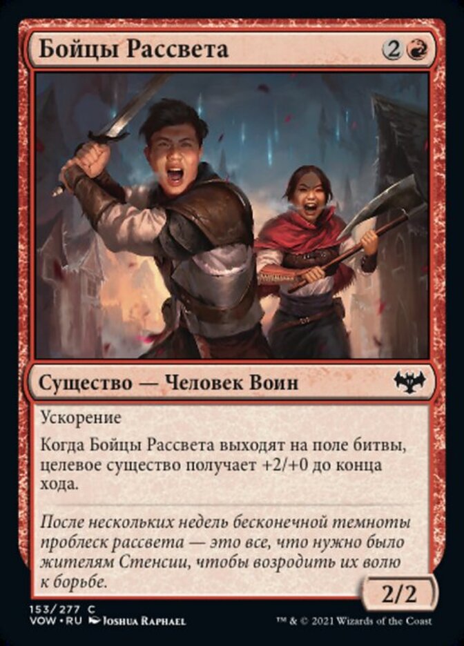 | Rules | Haste When Daybreak Combatants enters the battlefield, target creature gets +2/+0 until end of turn. |