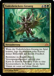 | Rules | When Deadbridge Chant enters the battlefield, mill ten cards. At the beginning of your upkeep, choose a card at random in your graveyard. If it's a creature card, put it onto the battlefield. Otherwise, put it into your hand. |