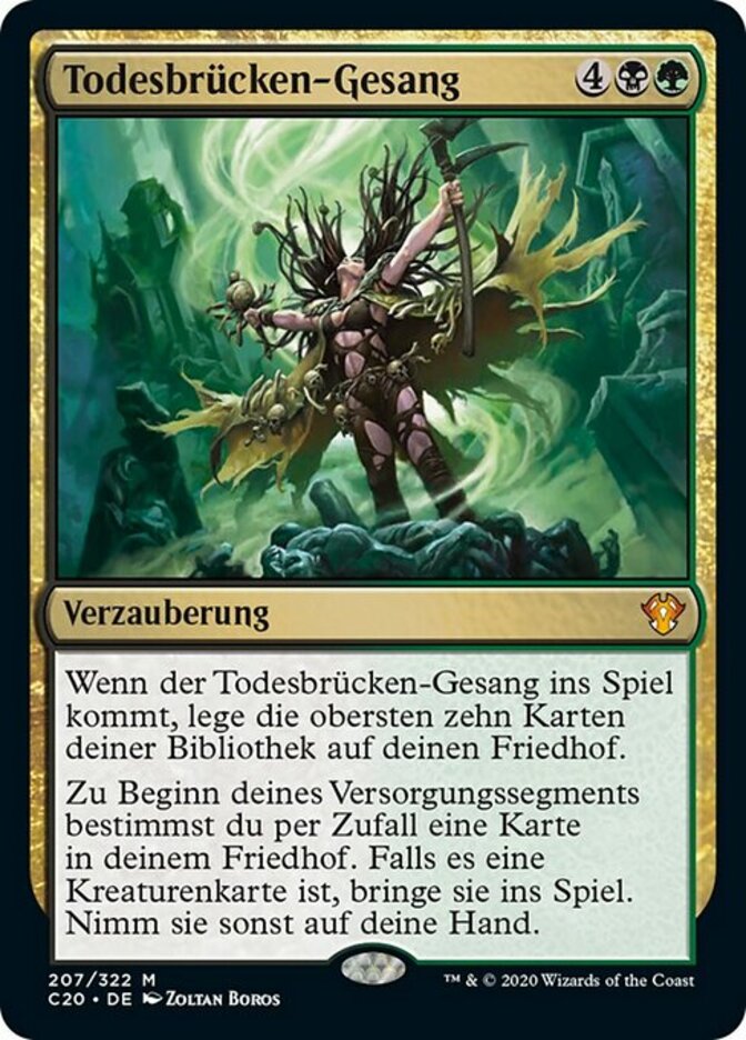 | Rules | When Deadbridge Chant enters the battlefield, mill ten cards. At the beginning of your upkeep, choose a card at random in your graveyard. If it's a creature card, put it onto the battlefield. Otherwise, put it into your hand. |