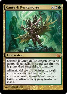 | Rules | When Deadbridge Chant enters the battlefield, mill ten cards. At the beginning of your upkeep, choose a card at random in your graveyard. If it's a creature card, put it onto the battlefield. Otherwise, put it into your hand. |