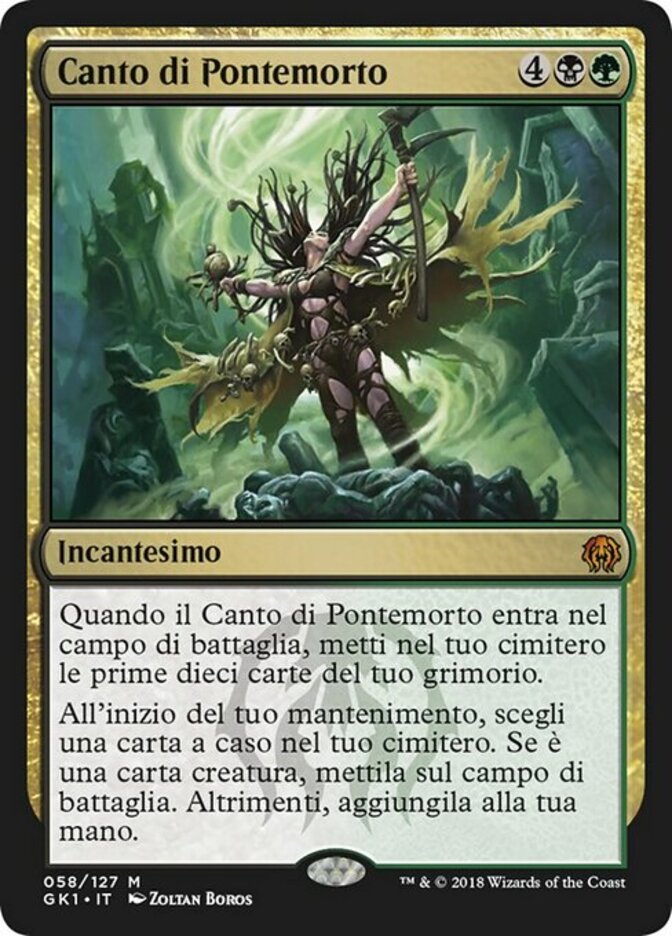 | Rules | When Deadbridge Chant enters the battlefield, mill ten cards. At the beginning of your upkeep, choose a card at random in your graveyard. If it's a creature card, put it onto the battlefield. Otherwise, put it into your hand. |