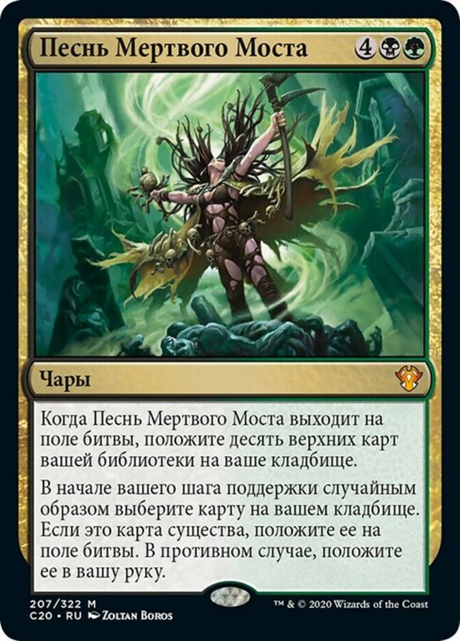 | Rules | When Deadbridge Chant enters the battlefield, mill ten cards. At the beginning of your upkeep, choose a card at random in your graveyard. If it's a creature card, put it onto the battlefield. Otherwise, put it into your hand. |