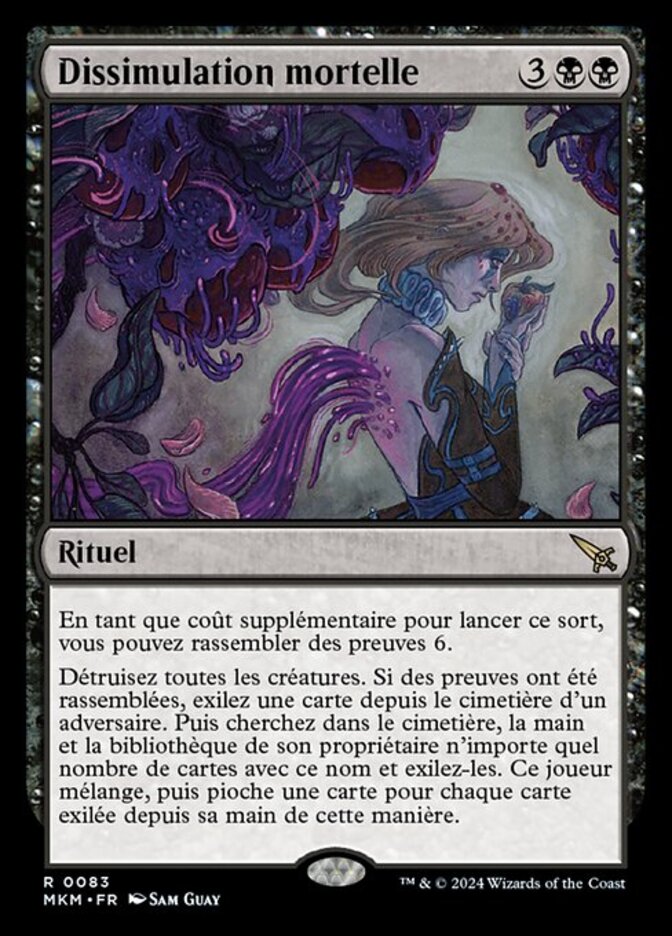 | Rules | As an additional cost to cast this spell, you may collect evidence 6. Destroy all creatures. If evidence was collected, exile a card from an opponent's graveyard. Then search its owner's graveyard, hand, and library for any number of cards with that name and exile them. That player shuffles, then draws a card for each card exiled from their hand this way. |