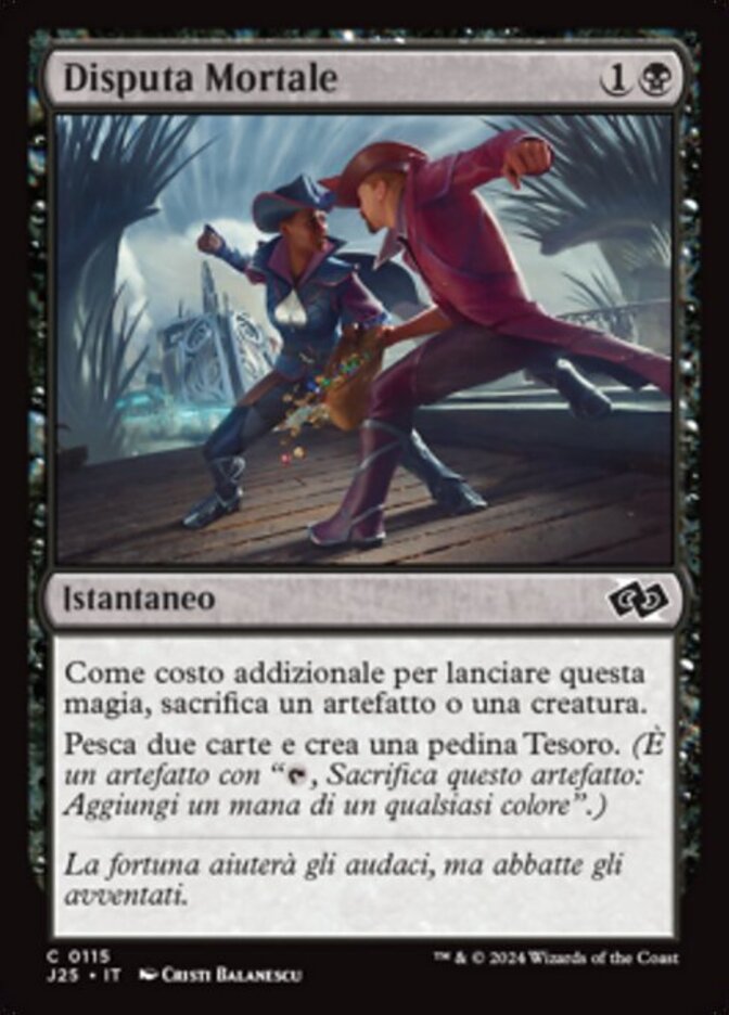 | Rules | As an additional cost to cast this spell, sacrifice an artifact or creature. Draw two cards and create a Treasure token. (It's an artifact with ", Sacrifice this artifact: Add one mana of any color.") |