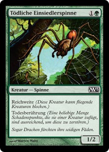 | Rules | Reach (This creature can block creatures with flying.) Deathtouch (Any amount of damage this deals to a creature is enough to destroy it.) |