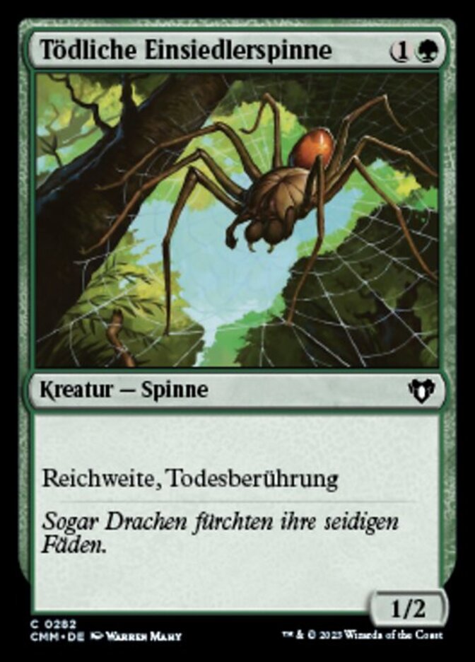 | Rules | Reach (This creature can block creatures with flying.) Deathtouch (Any amount of damage this deals to a creature is enough to destroy it.) |