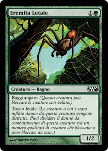 | Rules | Reach (This creature can block creatures with flying.) Deathtouch (Any amount of damage this deals to a creature is enough to destroy it.) |