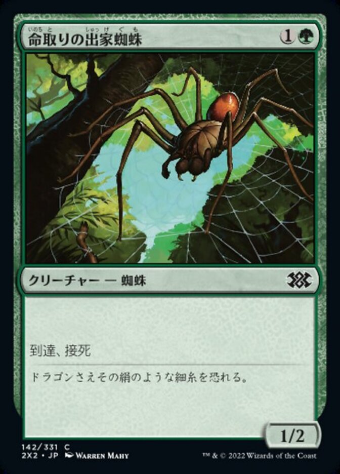 | Rules | Reach (This creature can block creatures with flying.) Deathtouch (Any amount of damage this deals to a creature is enough to destroy it.) |