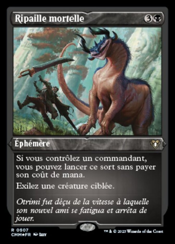 | Rules | If you control a commander, you may cast this spell without paying its mana cost. Exile target creature. |