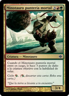 | Rules | When Deadshot Minotaur enters the battlefield, it deals 3 damage to target creature with flying. Cycling (, Discard this card: Draw a card.) |