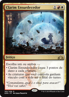 | Rules | Choose one or both — • Deafening Clarion deals 3 damage to each creature. • Creatures you control gain lifelink until end of turn. |