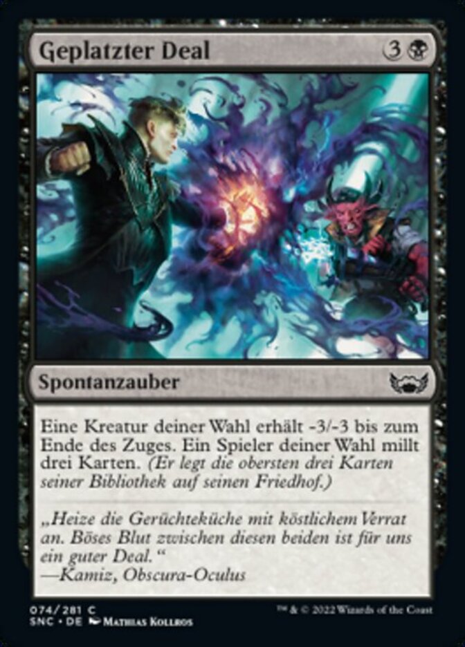 | Rules | Target creature gets -3/-3 until end of turn. Target player mills three cards. (They put the top three cards of their library into their graveyard.) |