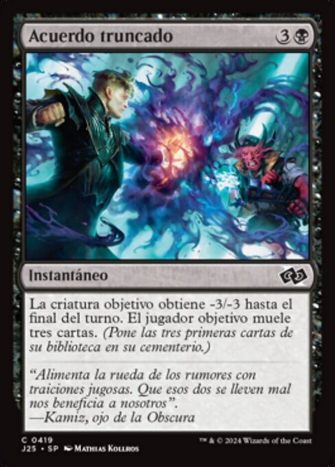 | Rules | Target creature gets -3/-3 until end of turn. Target player mills three cards. (They put the top three cards of their library into their graveyard.) |