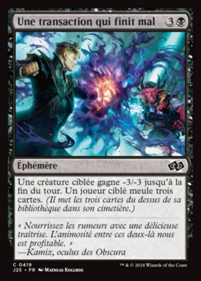 | Rules | Target creature gets -3/-3 until end of turn. Target player mills three cards. (They put the top three cards of their library into their graveyard.) |