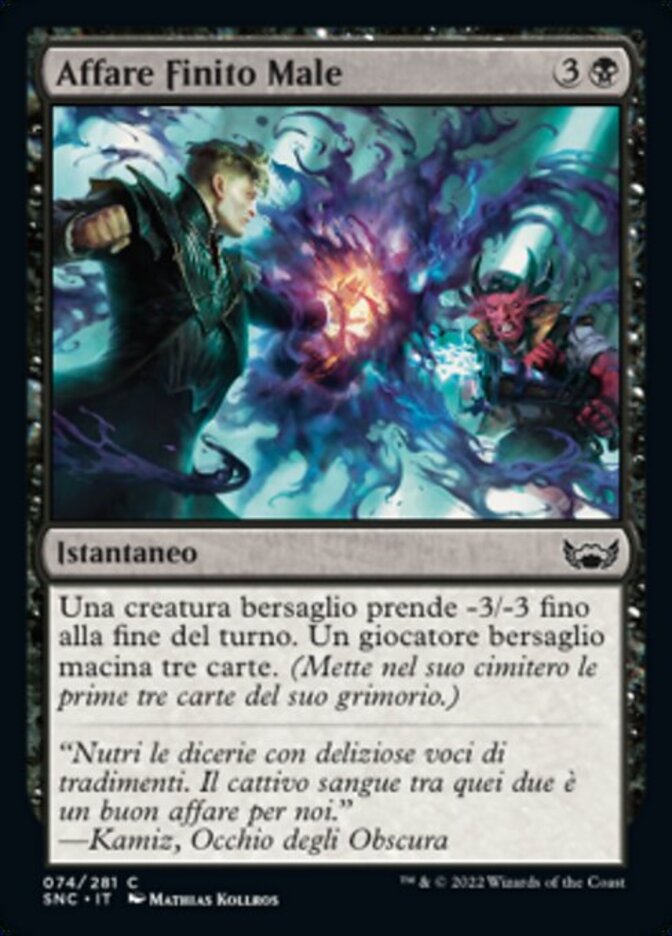 | Rules | Target creature gets -3/-3 until end of turn. Target player mills three cards. (They put the top three cards of their library into their graveyard.) |
