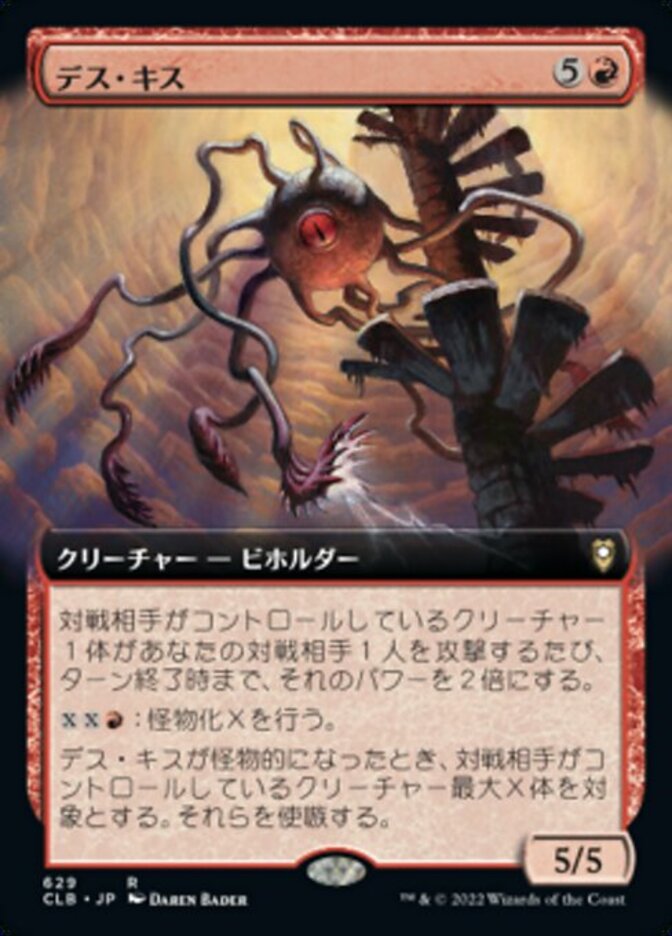 | Rules | Whenever a creature an opponent controls attacks one of your opponents, double its power until end of turn. : Monstrosity X. (If this creature isn't monstrous, put X +1/+1 counters on it and it becomes monstrous.) When Death Kiss becomes monstrous, goad up to X target creatures your opponents control. |