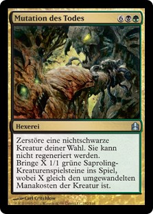 | Rules | Destroy target nonblack creature. It can't be regenerated. Create X 1/1 green Saproling creature tokens, where X is that creature's mana value. |