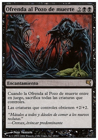 | Rules | When Death Pit Offering enters the battlefield, sacrifice all creatures you control. Creatures you control get +2/+2. |