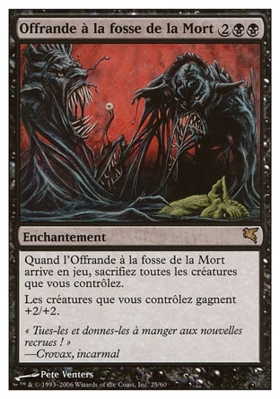 | Rules | When Death Pit Offering enters the battlefield, sacrifice all creatures you control. Creatures you control get +2/+2. |