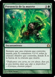 | Rules | Whenever a creature you control dies, put X +1/+1 counters on target creature you control, where X is the power of the creature that died. |