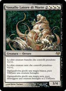 | Rules | Other white creatures you control get +1/+1. Other black creatures you control get +1/+1. Whenever you cast a white spell, you may tap target creature. Whenever you cast a black spell, you may destroy target creature if it's tapped. |