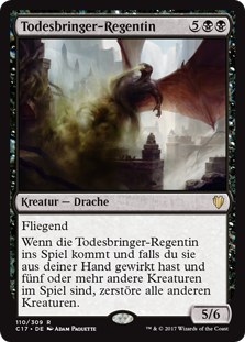 | Rules | Flying When Deathbringer Regent enters the battlefield, if you cast it from your hand and there are five or more other creatures on the battlefield, destroy all other creatures. |