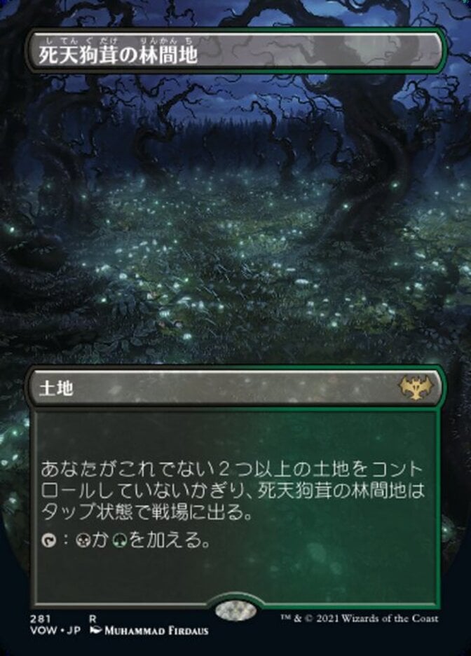 | Rules | Deathcap Glade enters the battlefield tapped unless you control two or more other lands. : Add or . |