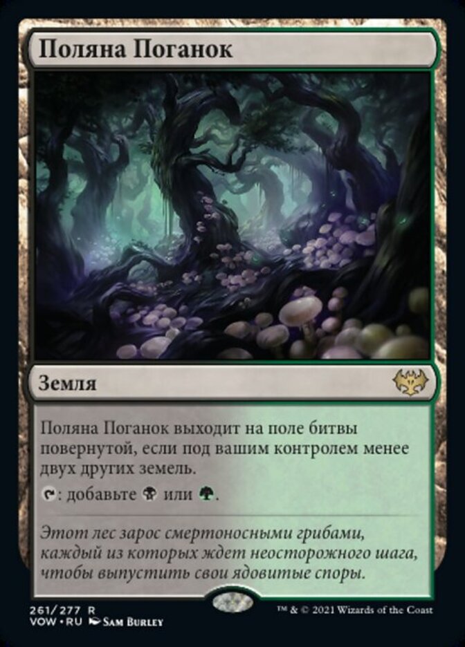 | Rules | Deathcap Glade enters the battlefield tapped unless you control two or more other lands. : Add or . |