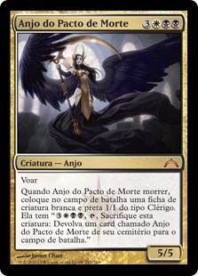 | Rules | Flying When Deathpact Angel dies, create a 1/1 white and black Cleric creature token. It has ", , Sacrifice this creature: Return a card named Deathpact Angel from your graveyard to the battlefield." |